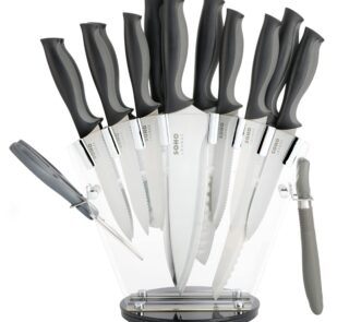 Ginsu Kiso 14-Piece Red Knife Set with Natural Block – Dishwasher Safe and Always Sharp